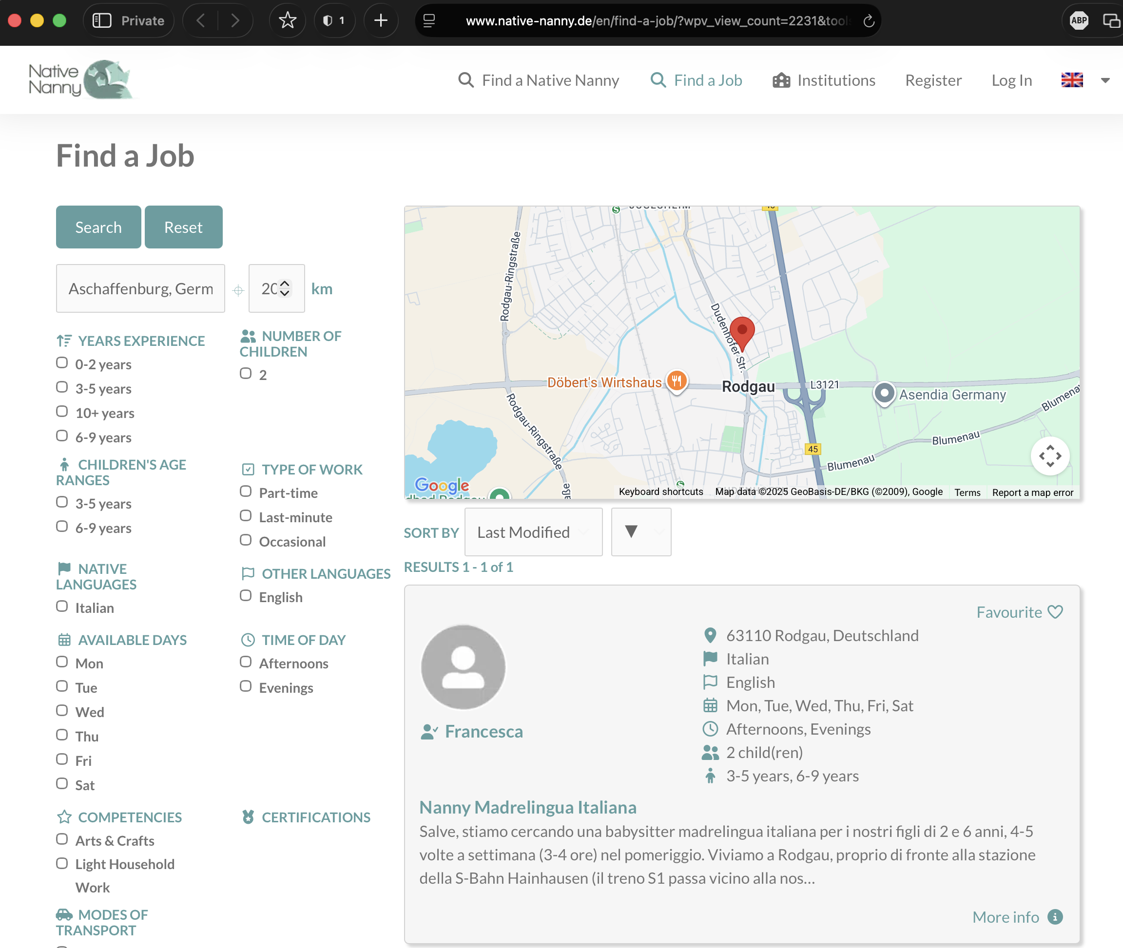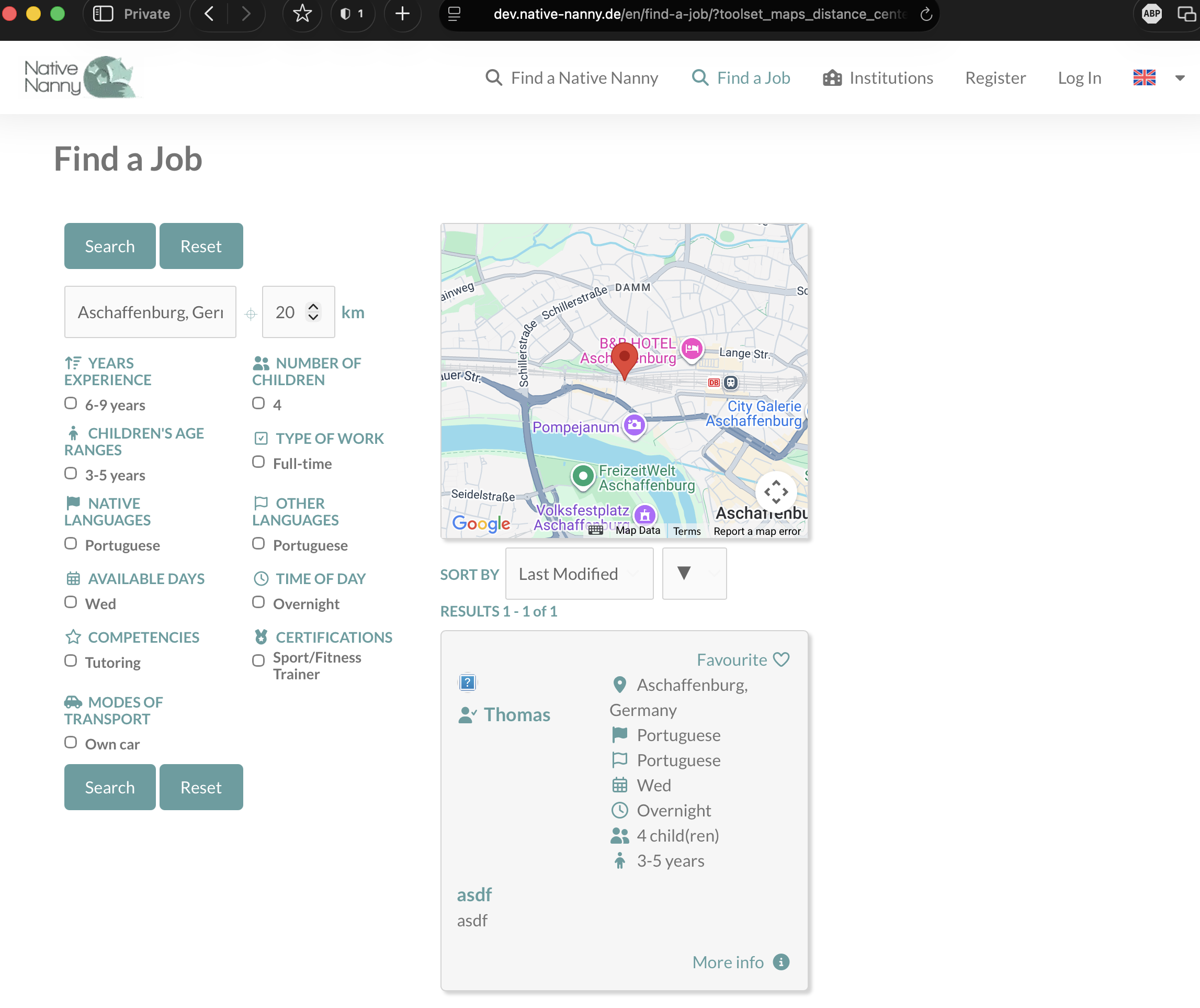 We have two Views find-a-native-nanny-search-and-results-view and find-a-job-search-and-results-view.