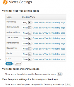 Usted verá una lista de todos los bucles (loops) donde puede usar views de archivo. Haga clic en ‘editar’ al lado de cada sección y elija cuál view muestra qué bucle.