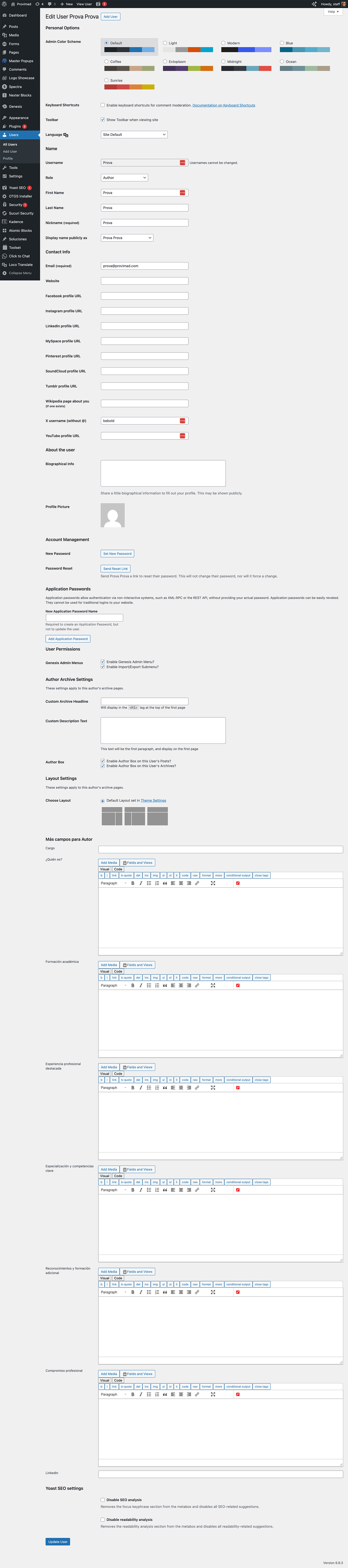 I have already created the custom author fields and I can see them on the user admin page.