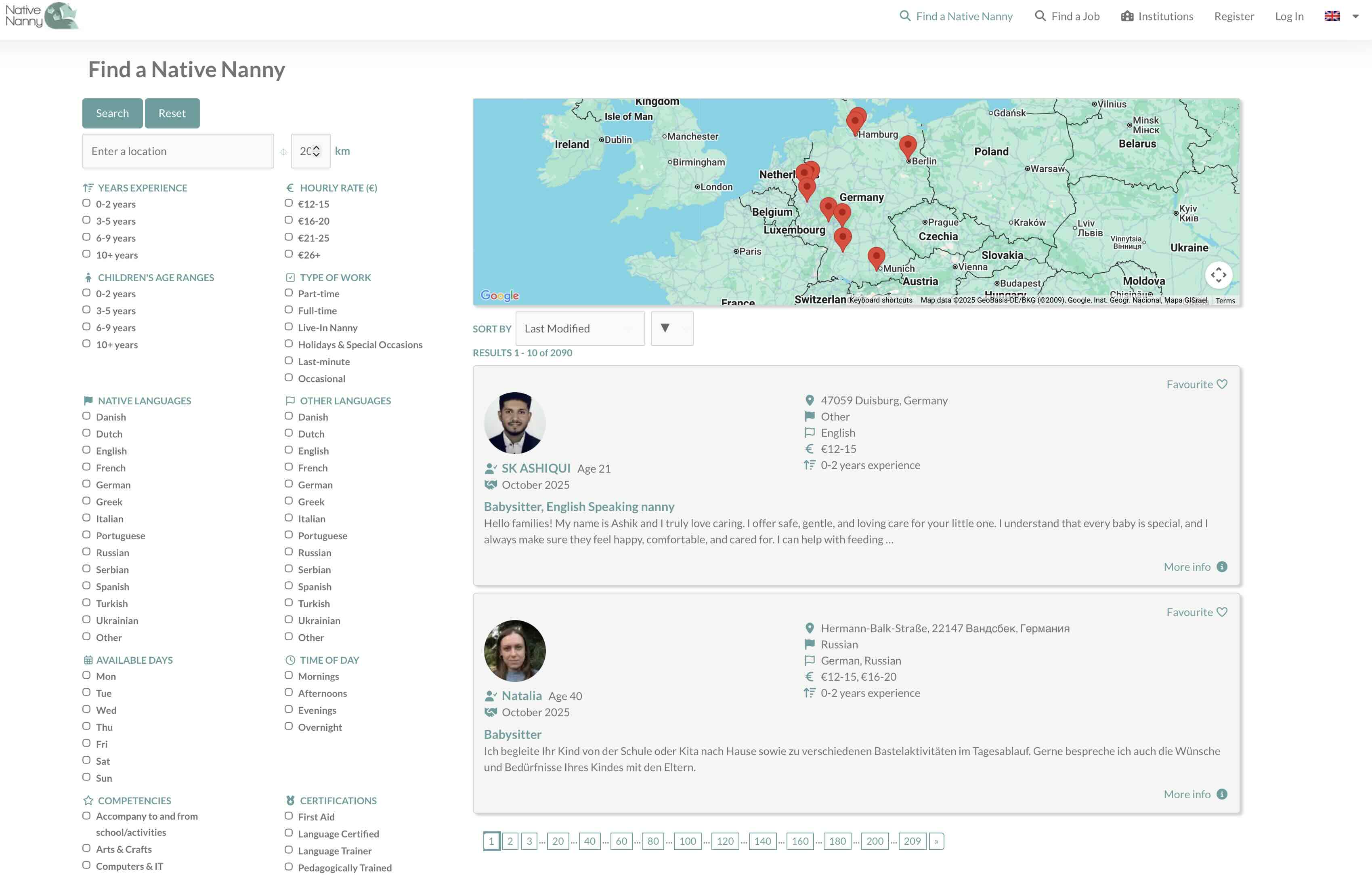 Currently the 1st page of results is either blank or only showing very recent results (ie nannies who recently registered with us). We have no such restriction on the query. The first page should show 10 results, but currently only showing 2 results. This morning page 1 showed no results, but results continued on page 2.
