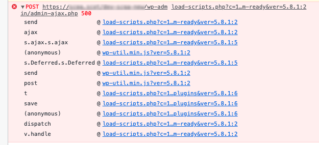 It keeps happening. No changes are accepted. In Console I see an error (attached) which ends in /admin-ajax.php 500 - when I click it, it shows a critical error.