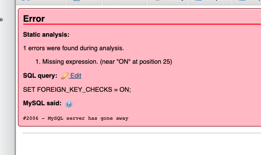 I have built a site on Mamp on a Mac. I uploaded the db file into phpMyAdmin as normal and got an error on upload saying: