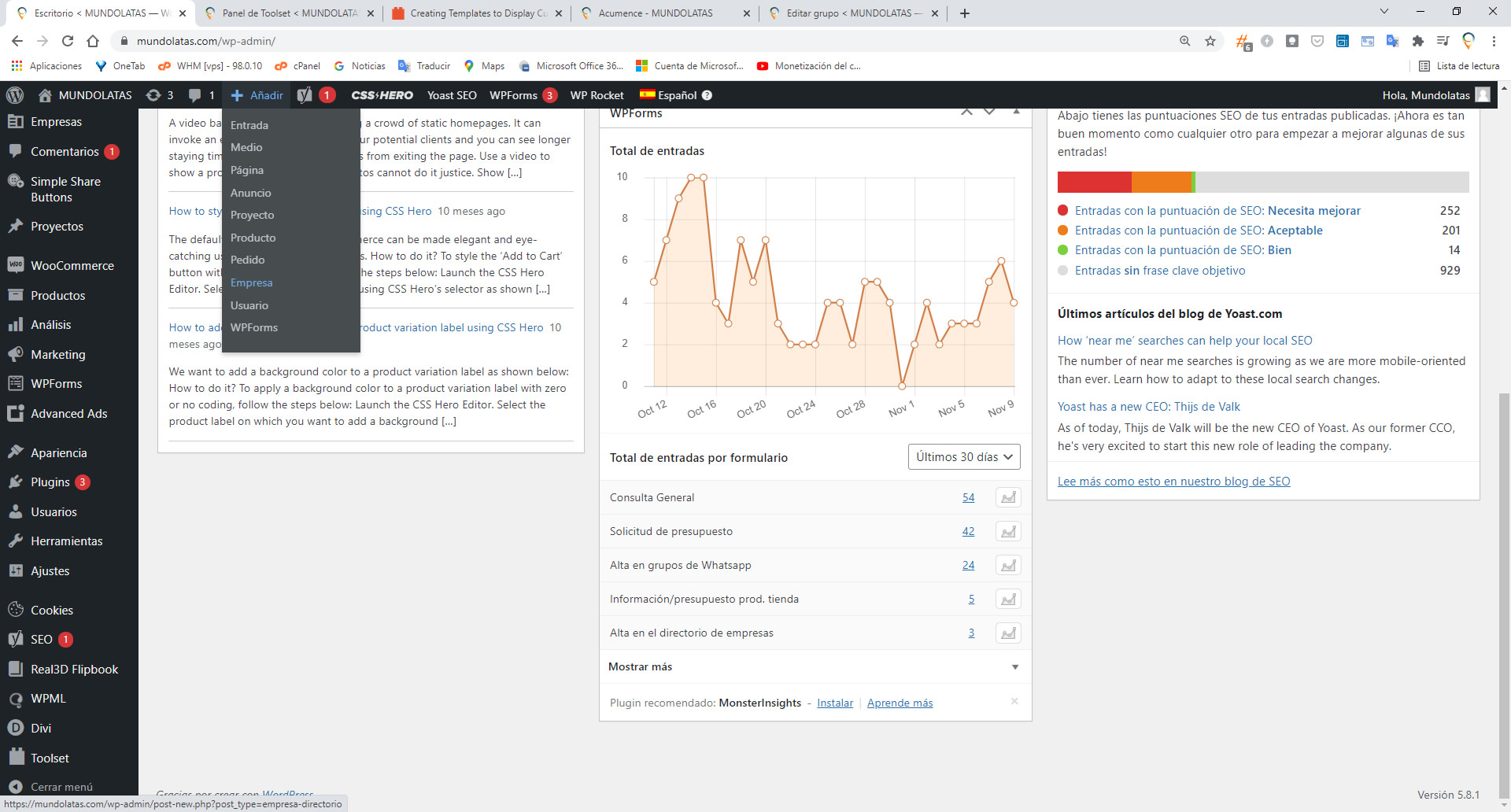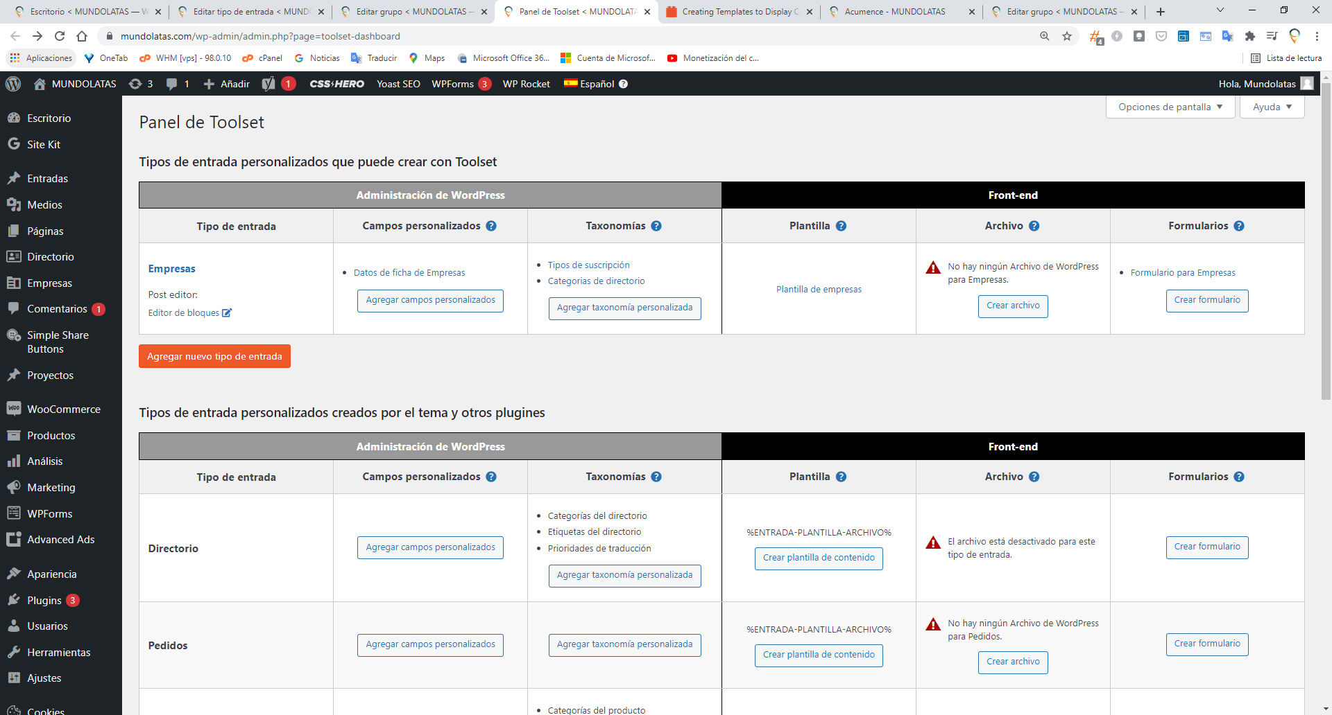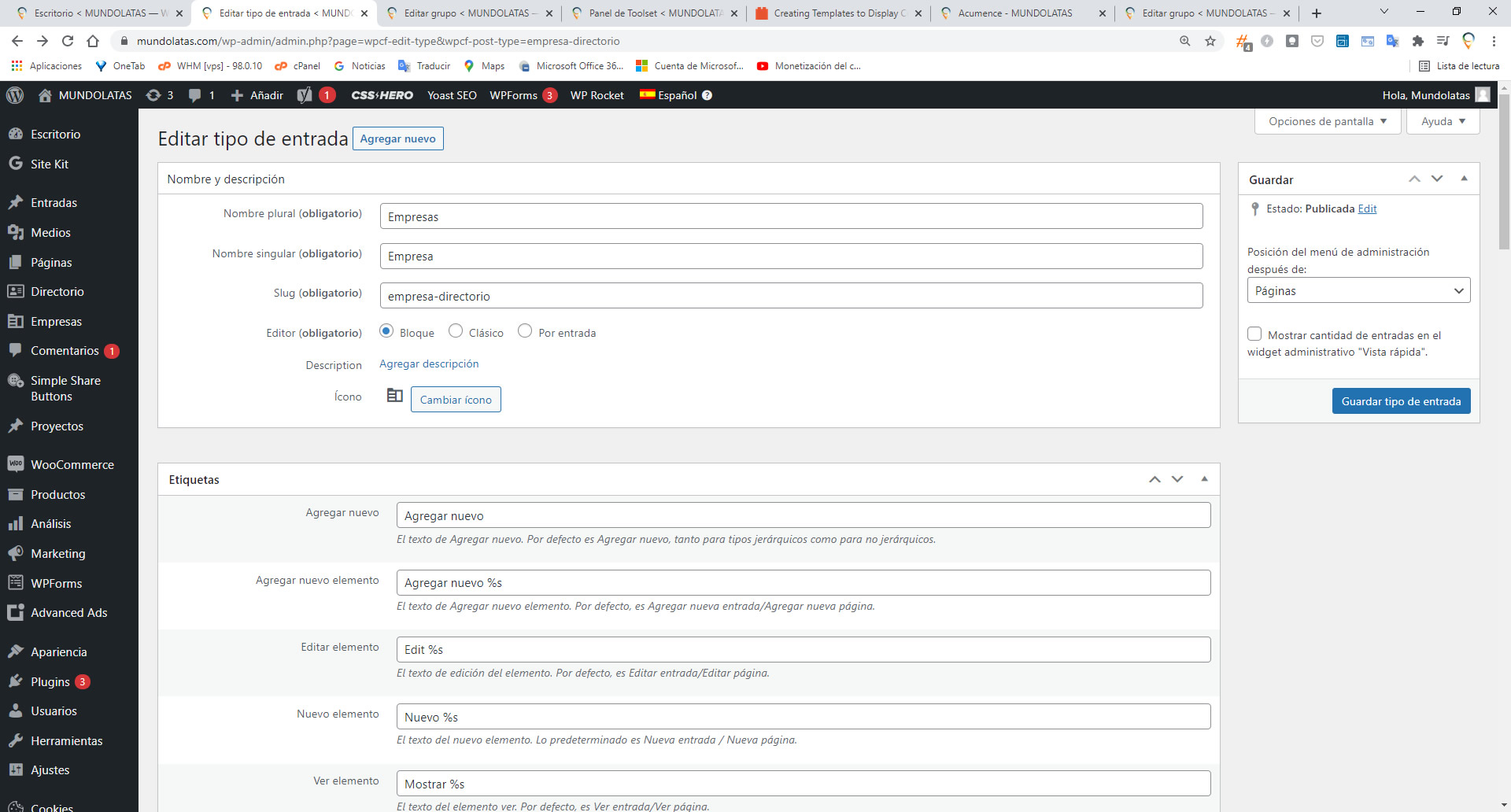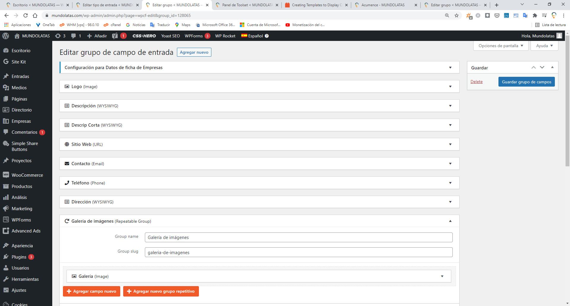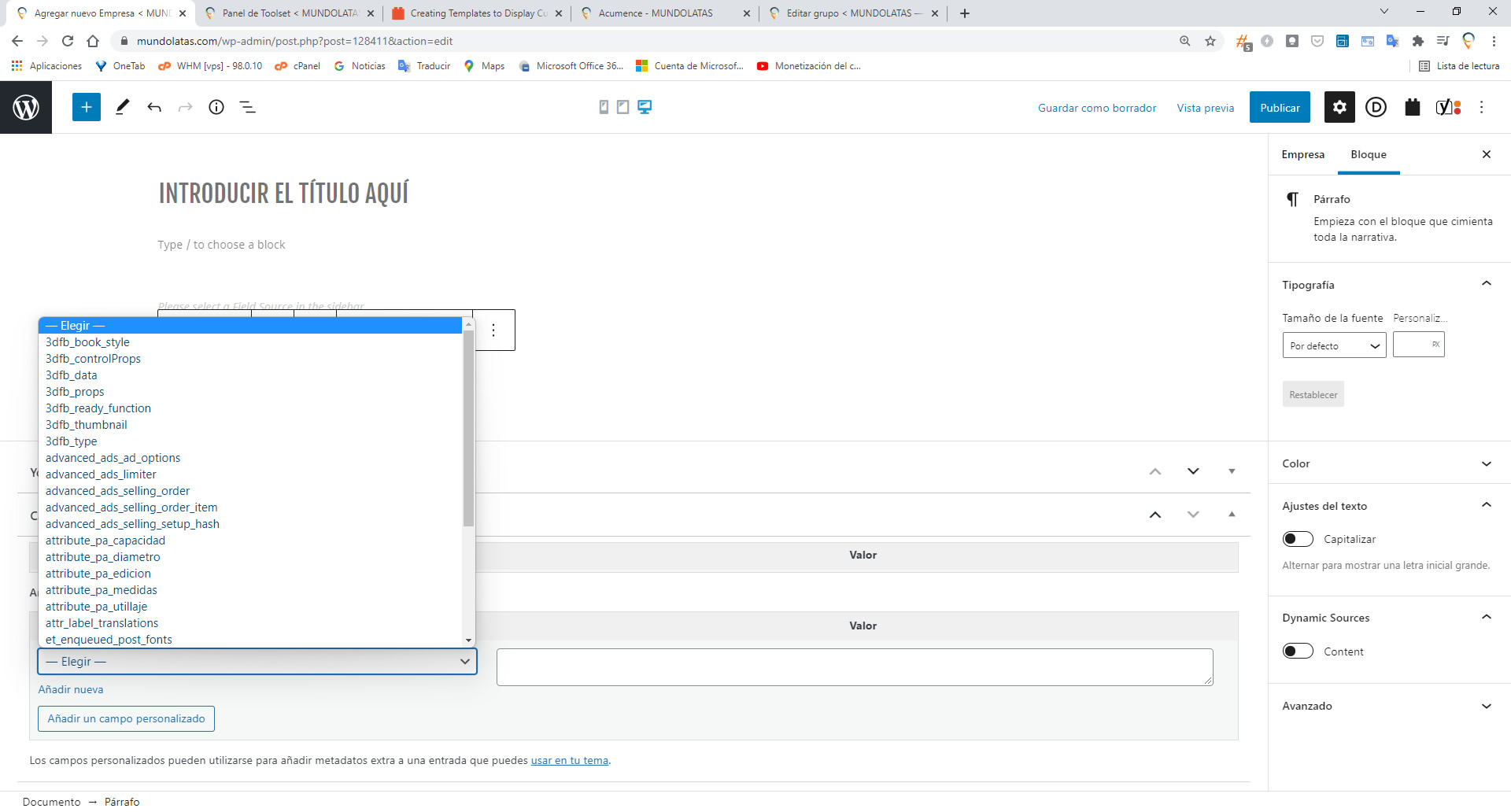 I have created a new post type called "Empresas" (Companies) and set the custom fields that I need for this entries. But, when i try to add a new company, it does NOT show any of these custom fields that I need to use.