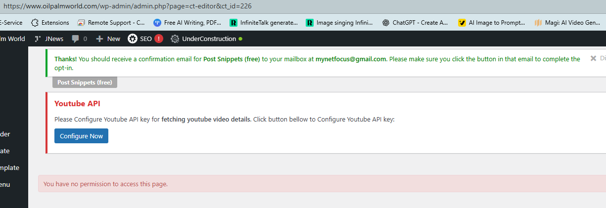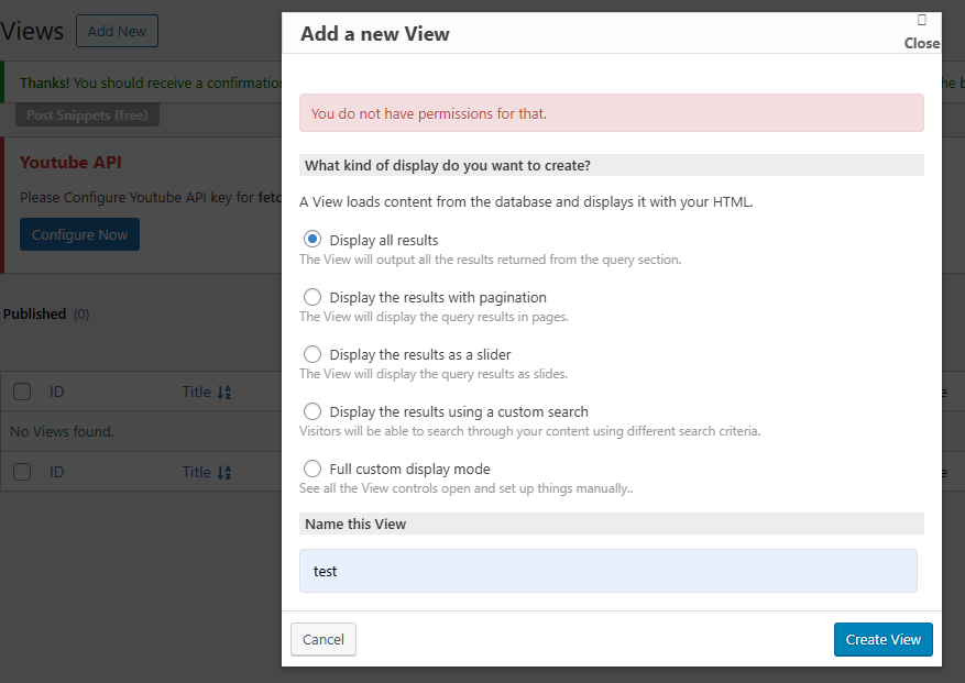 The client could not create a new Toolset View or Content Template from the Toolset admin screens. When clicking Add New View or creating the first Content Template, WordPress showed “You have no permission to access this page” and redirected to the CT editor. This happened even when logged in as an admin and with default Toolset settings.