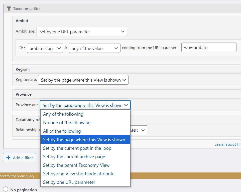 Then I have a view, source 'professionisti', to display all professionals associated to certain taxonomies .