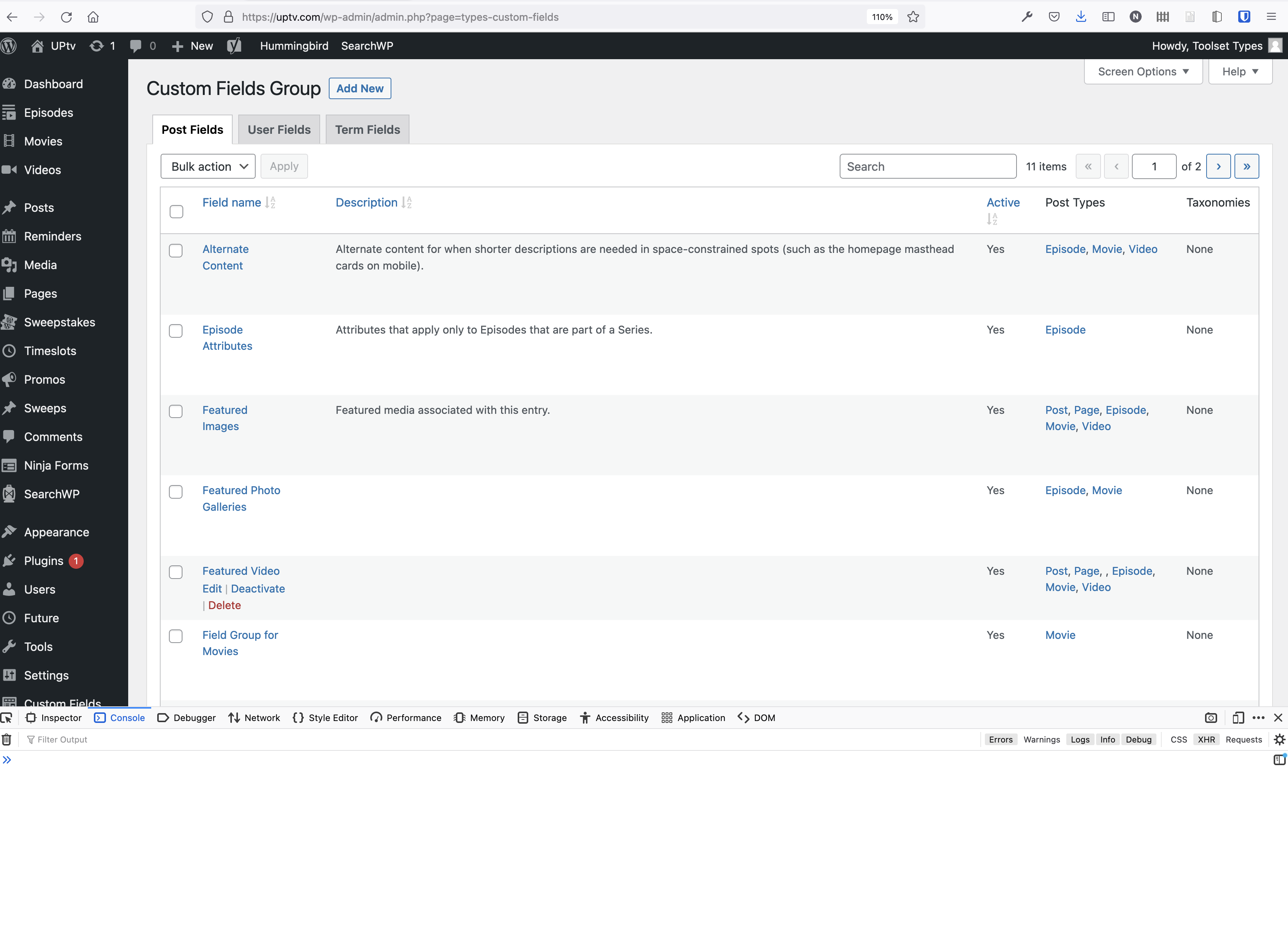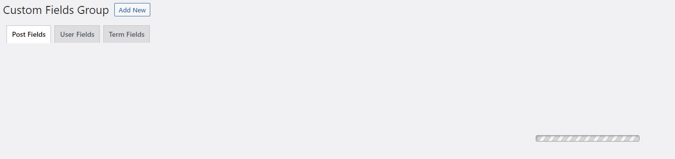 I am trying to: access the custom fields groups (post fields tab / user fields tab / terms field tab) -OR- add a new custom fields group. The page itself loads, but it never accesses any of the existing data.