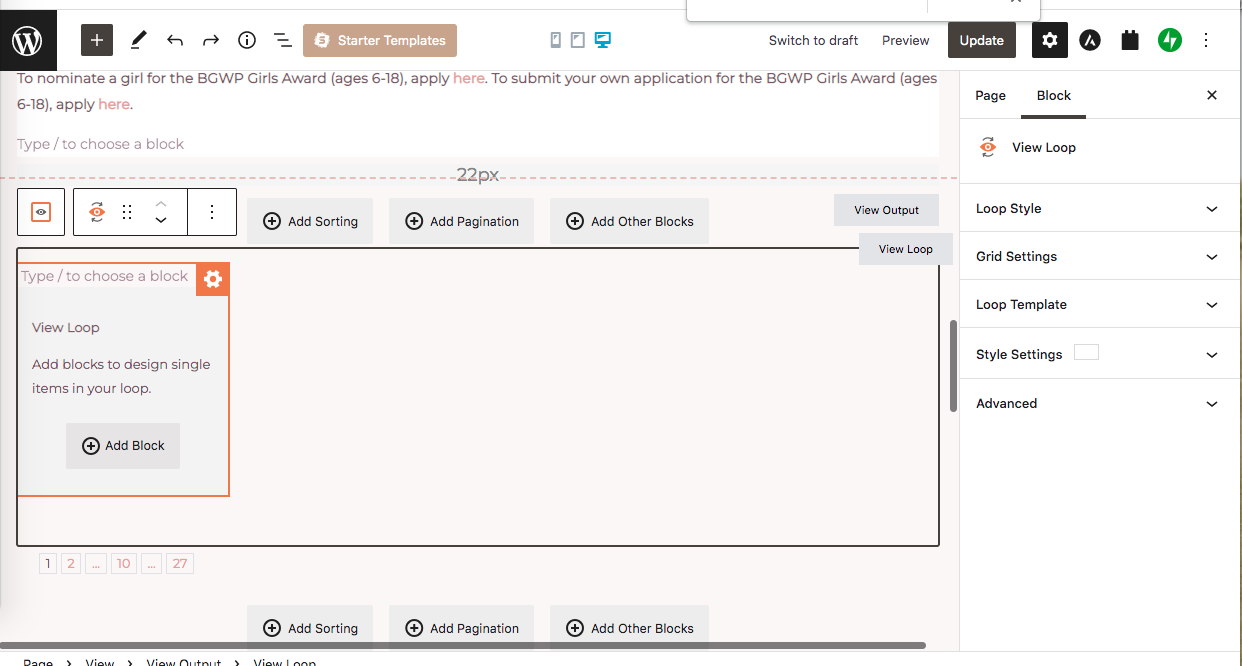 I figured out how to filter the categories. I still don't know how to change all of the images to be centered squares. Also, On the student scholarship page, the view block is pink and I want it to be white, like the about heading and paragraph block (like how the girls award view is). Everytime I try to make it white, only the background of the headings turns white, everything is still pink.