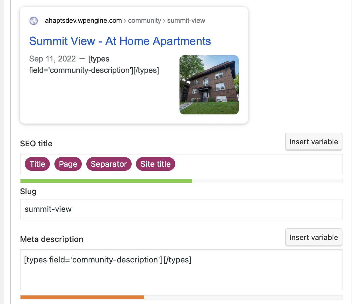 Example: on my Post type, I would like to add something similar to "[types field='community-description'][/types]" in the Yoast Meta Description. Does a functionality exist?