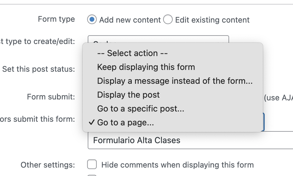I am working on a site with a Parent-Child relationship (Sedes -> Clases). My goal is to create a seamless workflow where the user creates a Parent post and is then redirected to a Child form that automatically captures the Parent ID.