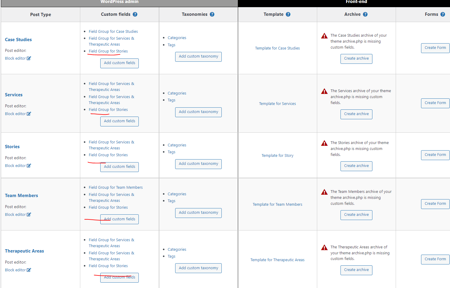 How do I limit certain field groups to appear in certain post types. Example I would like for Field Groups for Stories to only appear for Post Type Story.