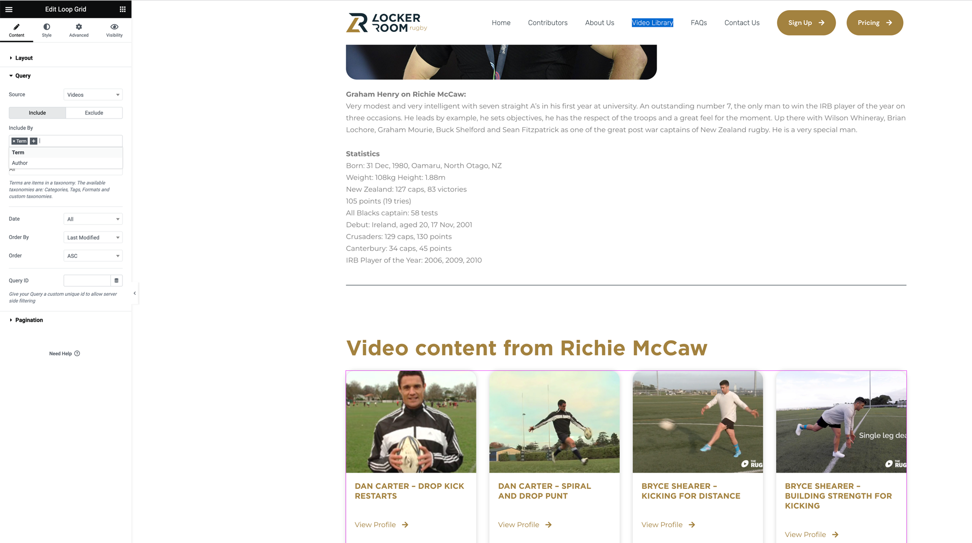 In the elementor template I've created the "Contributor" template but I cannot workout how to display the videos assigned via the relationship that I've created.