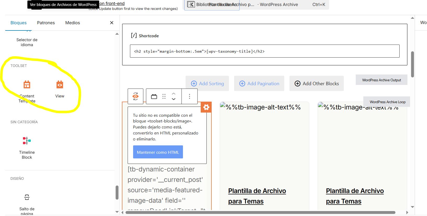 I am attaching an image with the old version of the Toolset-Blocks plugin, where everything was working correctly, so you can see the Toolset blocks that are failing.
