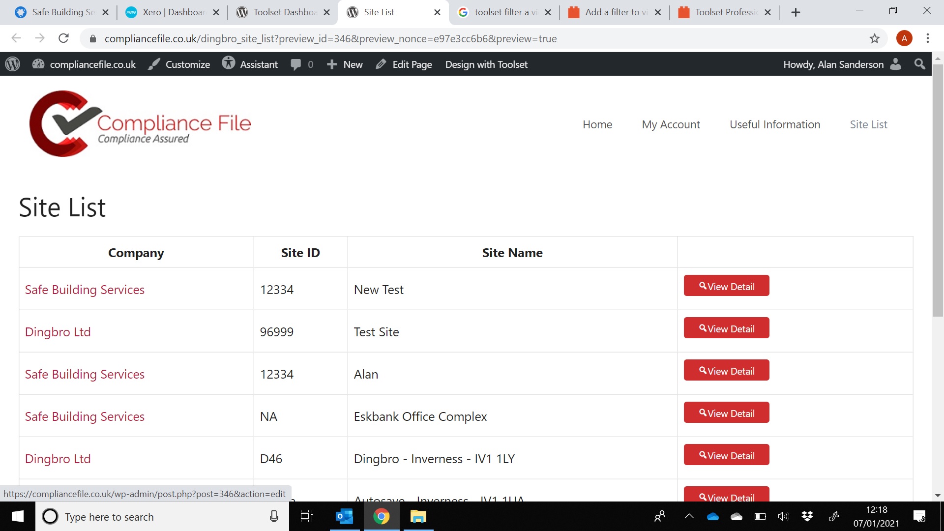 UserB - Role = Safe Building Services, they should only see Safe Building Services Sites.