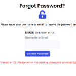 Despite entering valid email addresses or usernames, the error persists. I would appreciate it if you could help identify the root cause and suggest a resolution. Please let me know if any additional configuration is required for this shortcode to work as intended, or if the form supports both usernames and email addresses for password reset.
