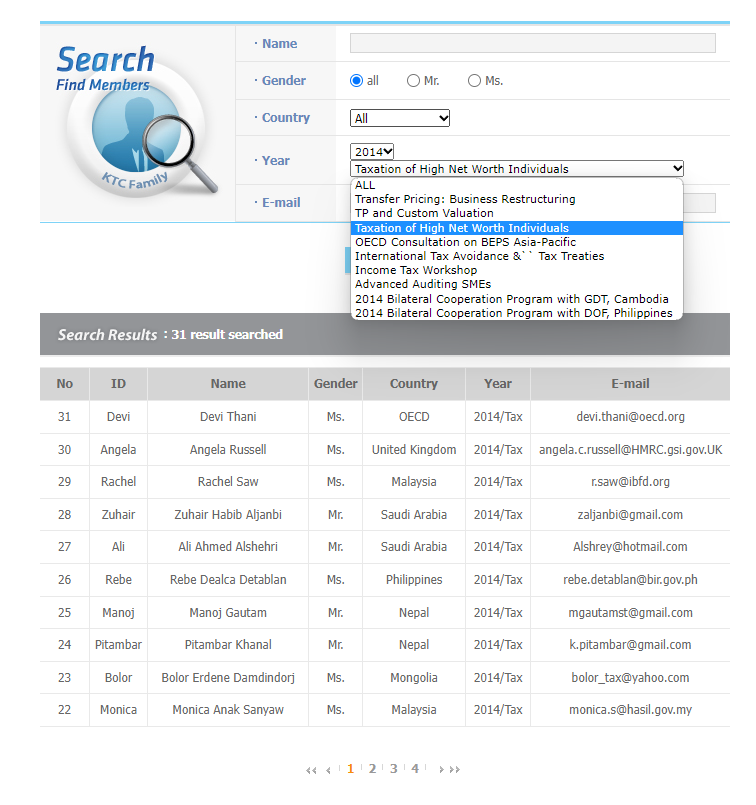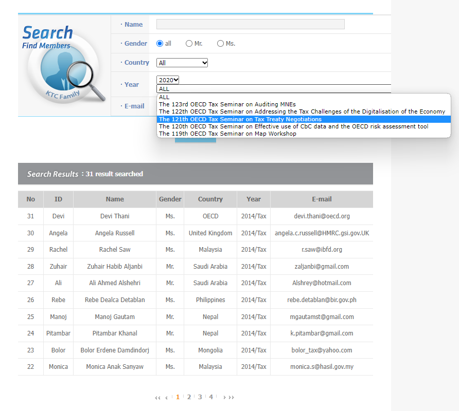 4. When searching finally, matching member information will be displayed along with information such as (name, gender, country, year/seminar, e-mail).