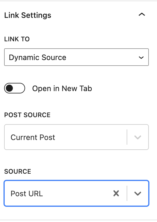 On the same settings in the sidebar for the Toolset Image block if you scroll down you will see a section called LINK SETTINGS.