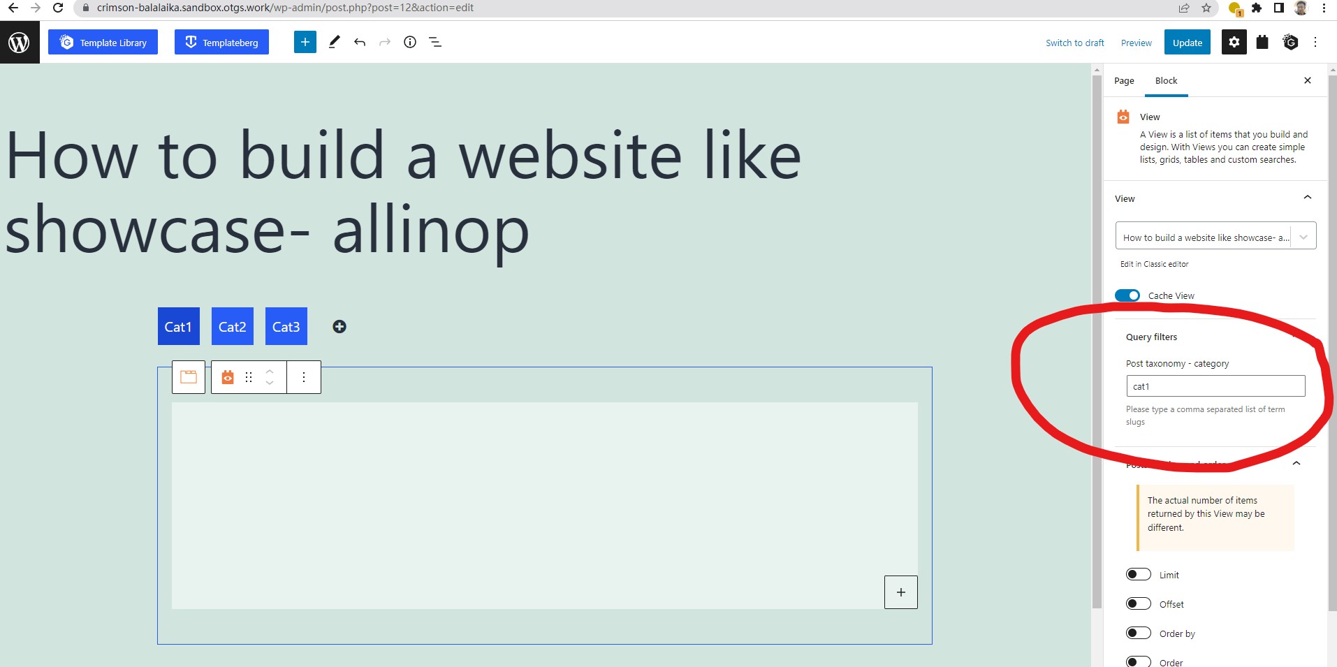 Categories slug in one of those set by the View shortcode attribute wpvcategory