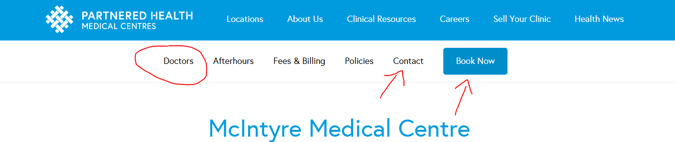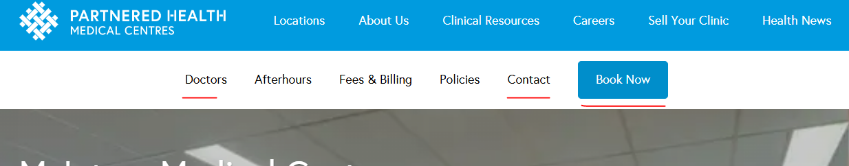 Pls focus on these 3 menus items: Doctors, Contact, & Book Now Button