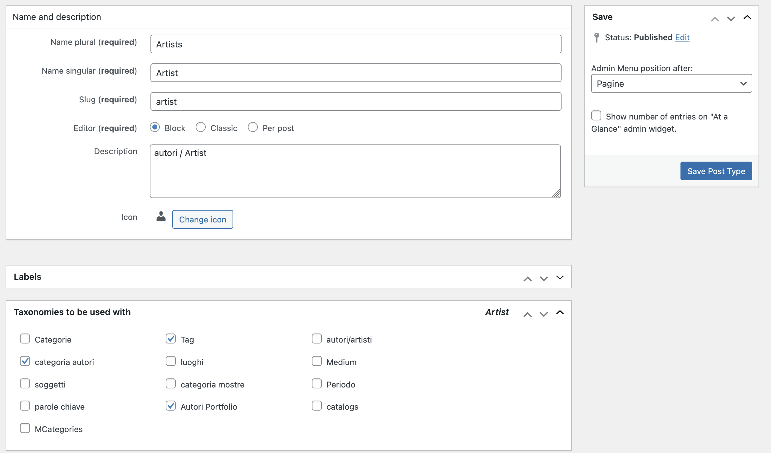 - “Slug” should be a simple slug, e.g. exhibitions.