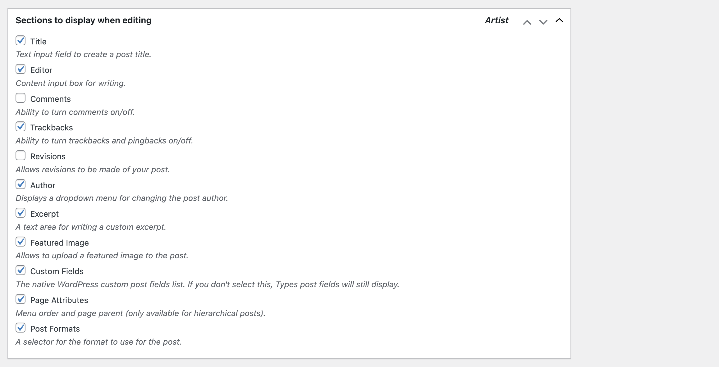 - Go to Toolset → Post Types → Exhibitions → Edit.