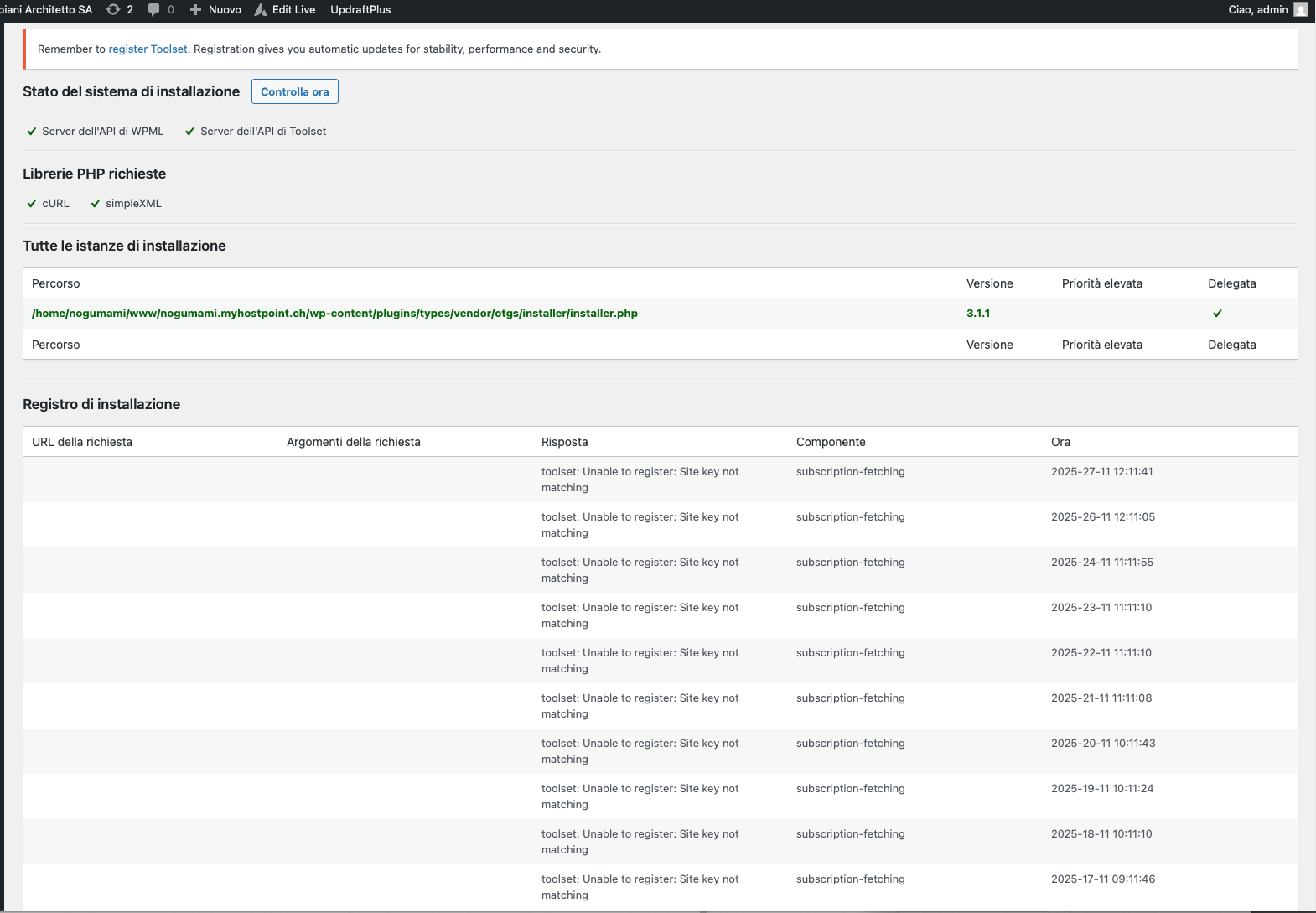 hello, I can not link to my license on Robbiani.com. If I try to link with the license code I found on toolset.com it says that it's not correct. Or it can not reach Toolset server. how can I solve that? it seems I can not even update the plugin without linking the right license. Thanks