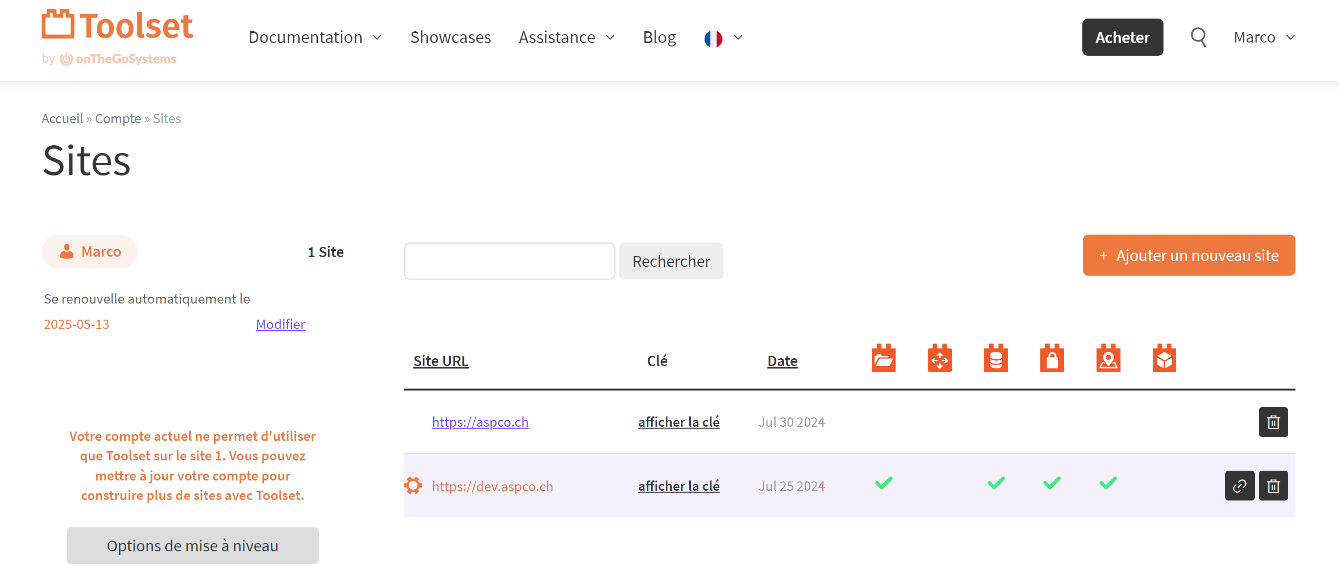 When I check my account with my licenses, it appears there is a problem with site validation (see attached file).