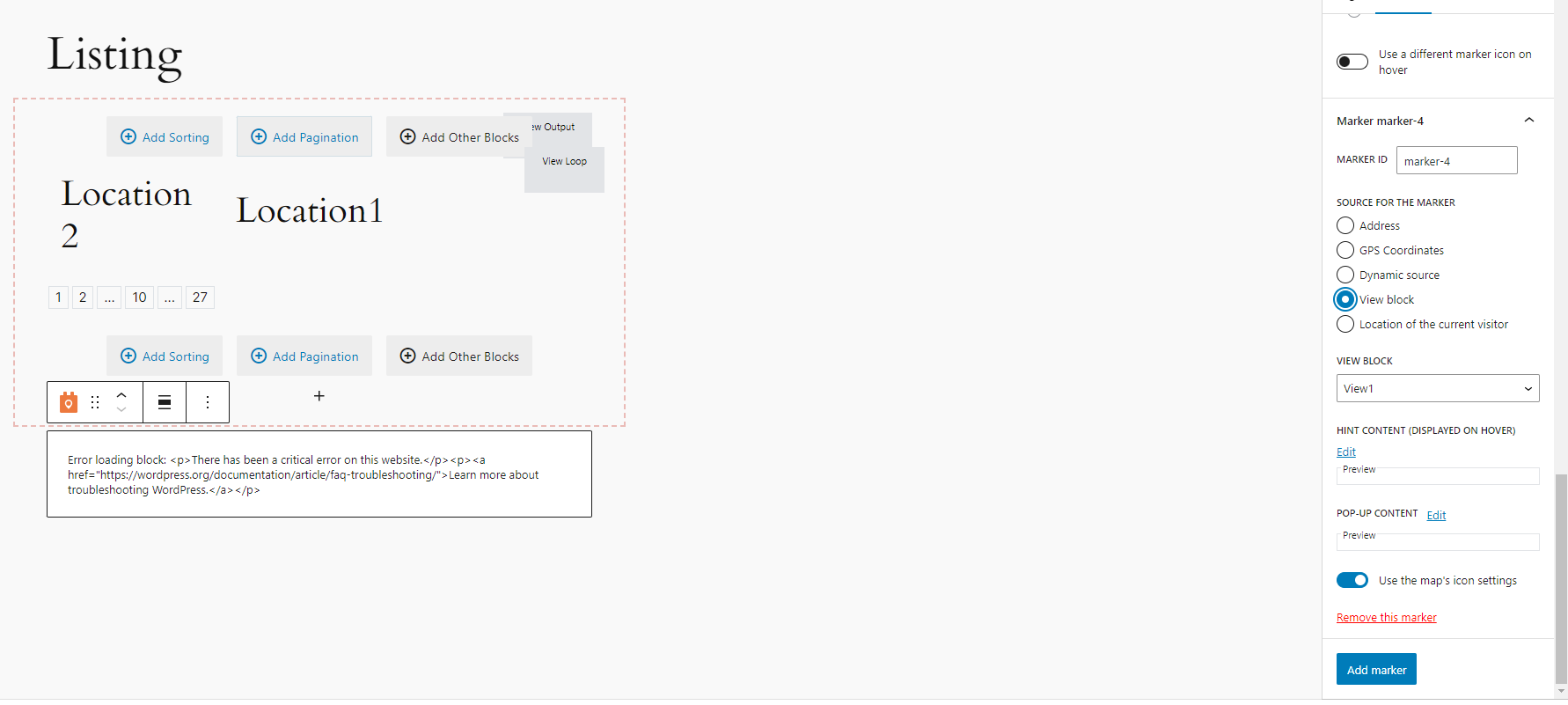 The location address field doesn't look right, it should be a field with Google Maps autocomplete for looking up an address.