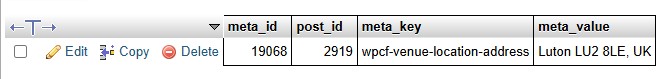 So I have a custom post type venue and within that there's a repeatable field group venue-location. When I search the database for the post code (zip code) of the location I can still see the record in the screenshot. I think Toolset must be still seeing the location from that record.