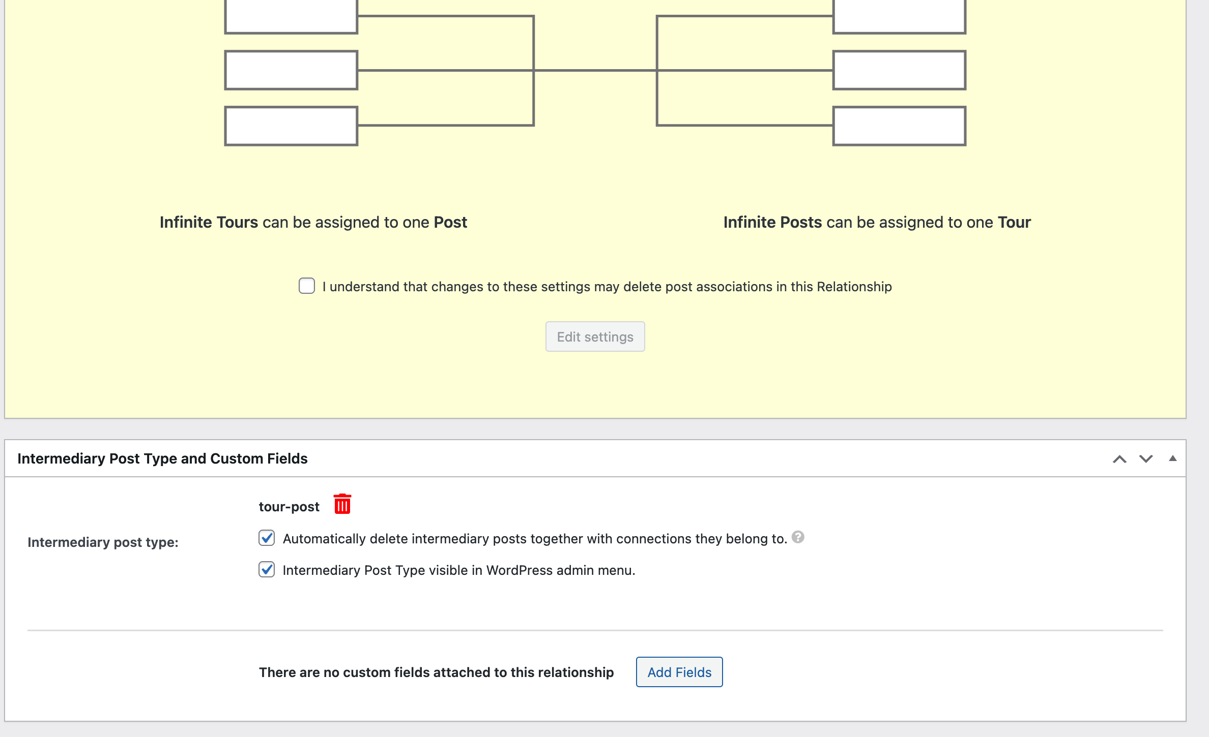 - In the popup, pick your relationship (e.g. Tour–Post).