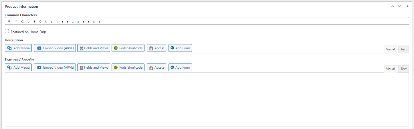 In your website's admin area, I noticed that if the visual tab is selected for the "WYSIWYG" type custom fields, any content added in the field becomes hidden.