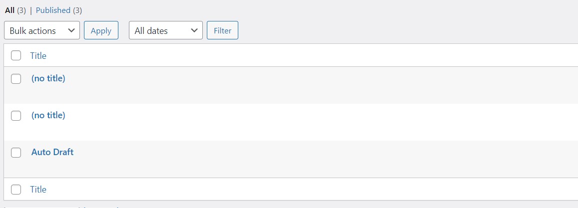 (We have already try to leave it blank , but we use the backend to fill this inforamation, and it is displayed with (no title) and (auto draft) (see image)