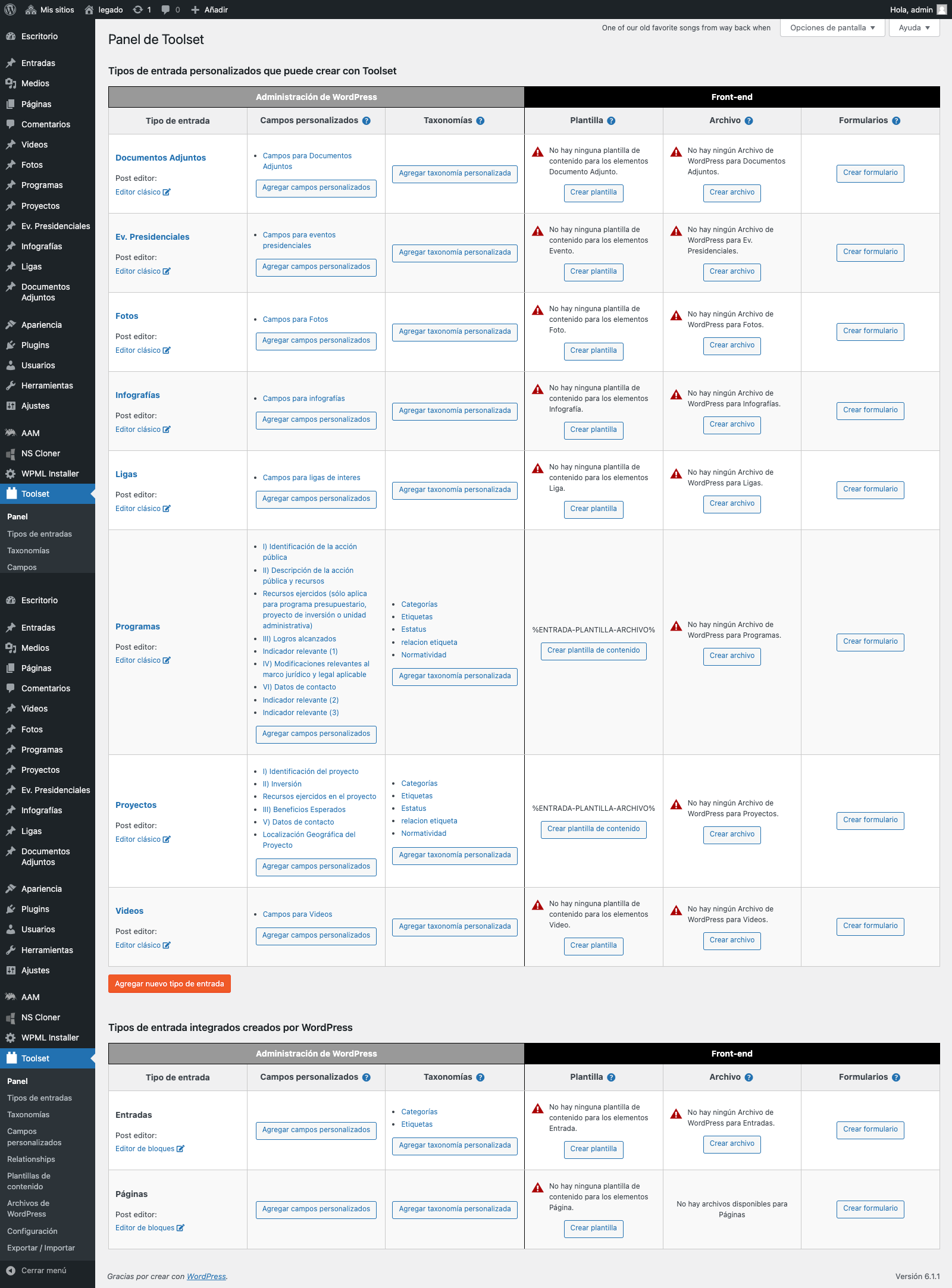 I recently recovered an old site that used Toolset Types version 1.0.4 and managed to update to the latest version 3.4.17 . Although all the post types were restored, I get the following Theme and Archive front end errors in the toolset panel for various post types created: "Theme’s template file single php for displaying items is missing custom field " and "Archive’s template file archive php for displaying items is missing custom field" .