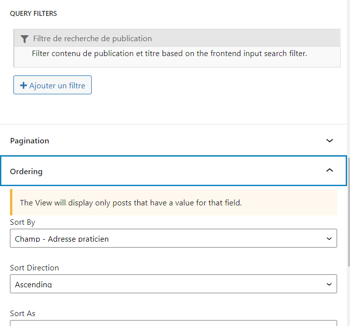 So basically we created a legacy view and we have configured it, everything's working now but we got a last problem, we use 2 criterias for the searching. The keywords (linked to the title and description), and an address field. Both search fields are still working but we lost the google location pop up as we aren't using the view block editor anymore and we are using a raw html searchbar. If there any solution to make it appear ? (the pop us is the thing showed in auto fill google png).