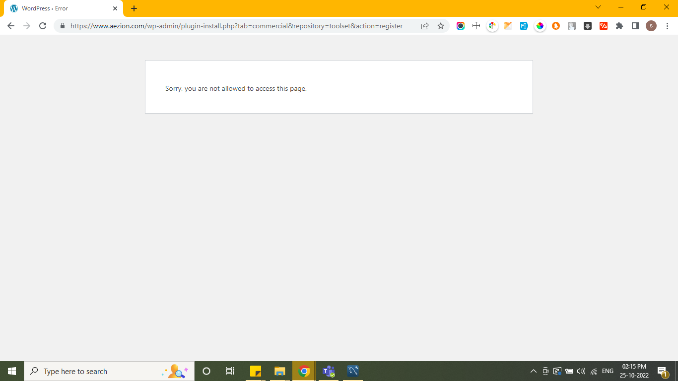 In Prod Environment, After I installed Toolset Plugin, when I click on the Register link, it leads me to "Can't access page."