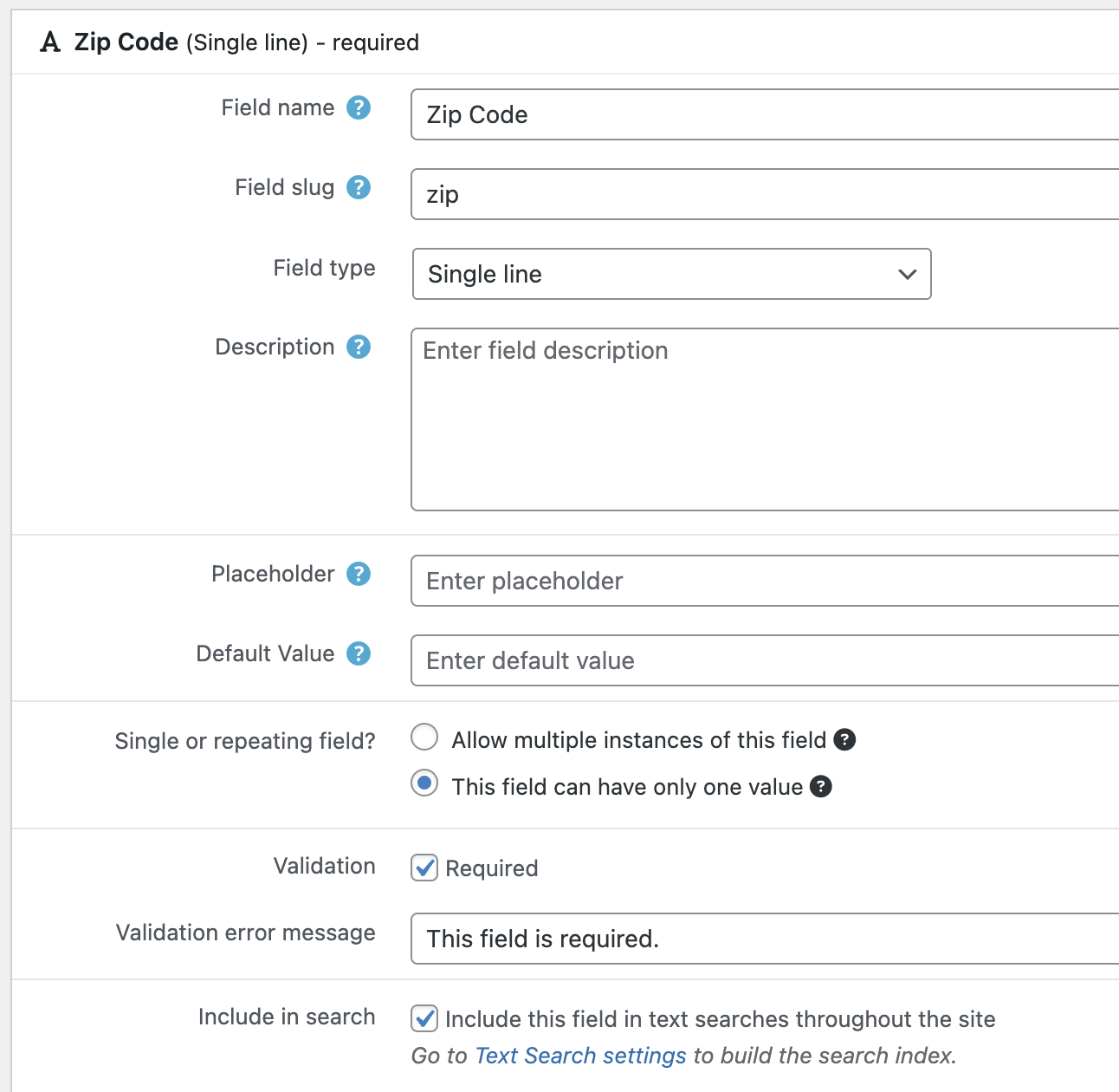 This text search is for our Zip Code field. In the backend we have:
