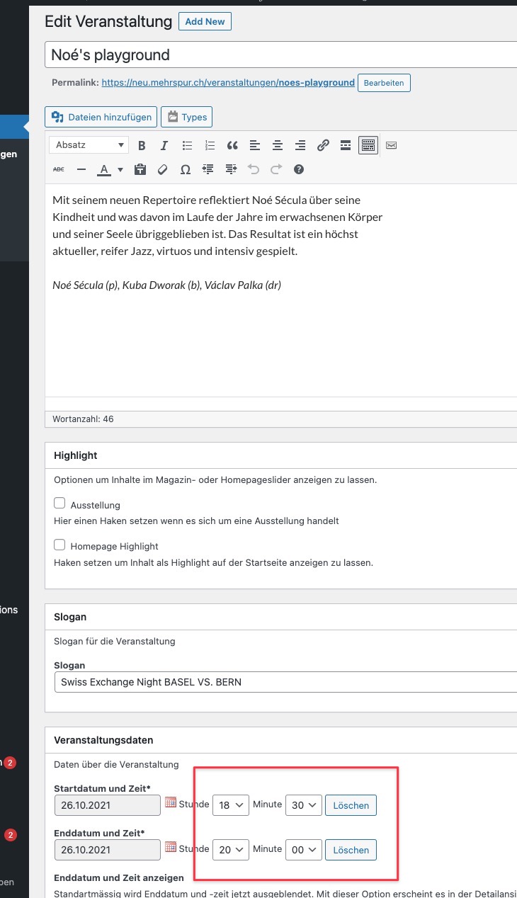 Link to a page where the issue can be seen: only in the WordPress backend.