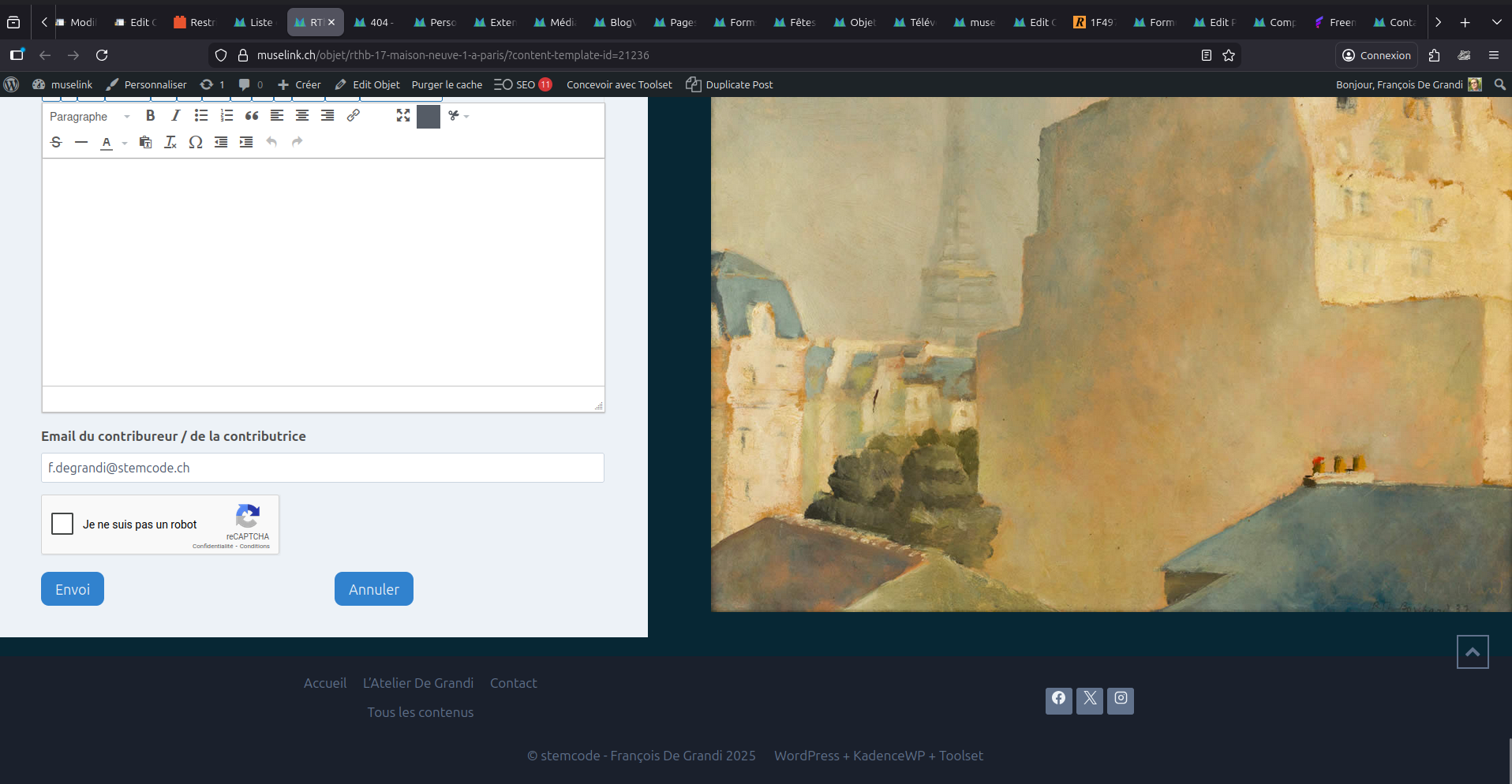 Here is the link to the Loom video I made to show you the problematic behavior of the "insert link" button of the tinymce editor of the Wisiwyg fields of the Toolset form included in the content model for editing "Objets" Types.