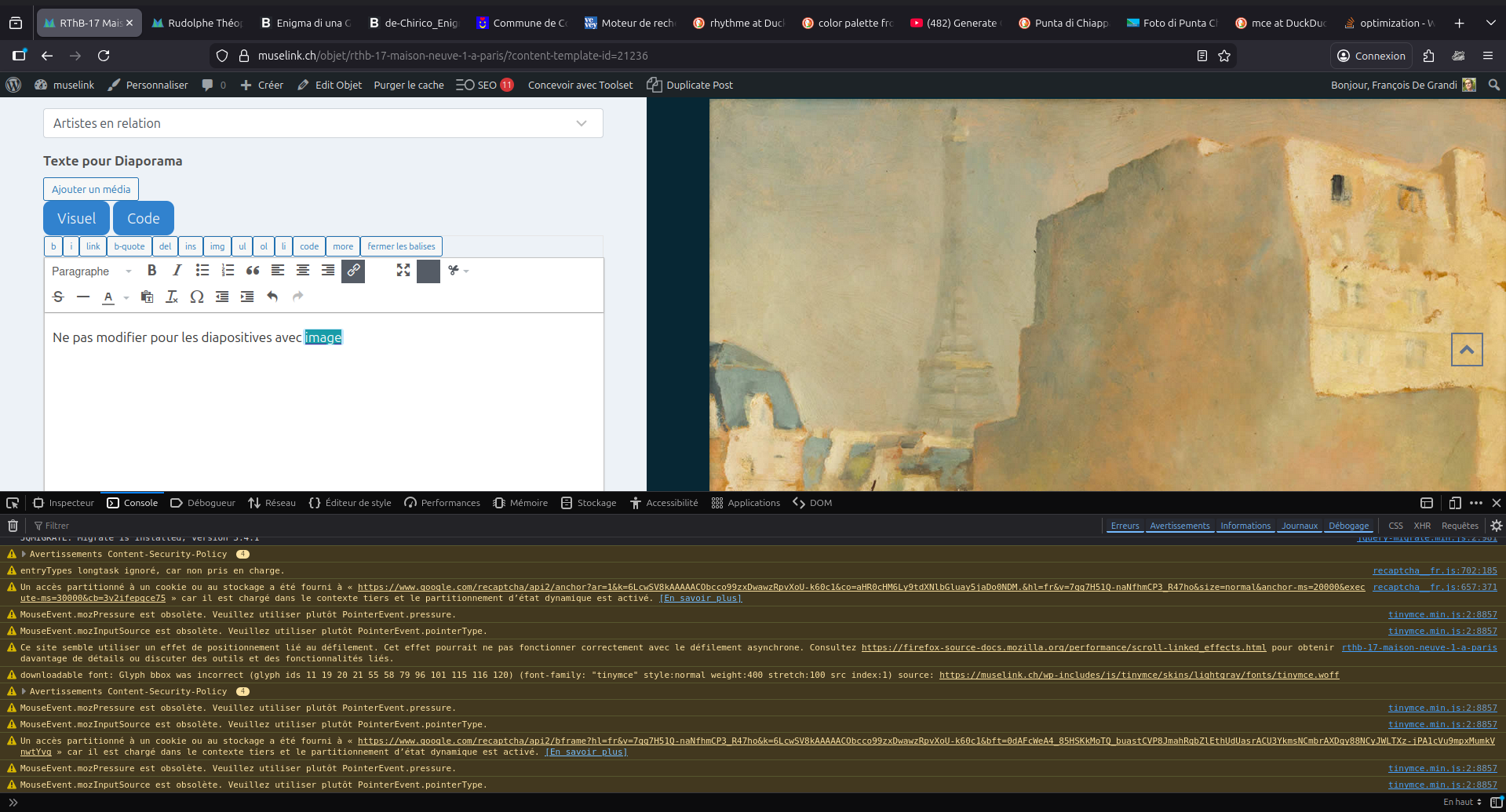 >> when opening the console in devtools, I get several warnings concerning a deprecated JS Event code... (see attachment 4)