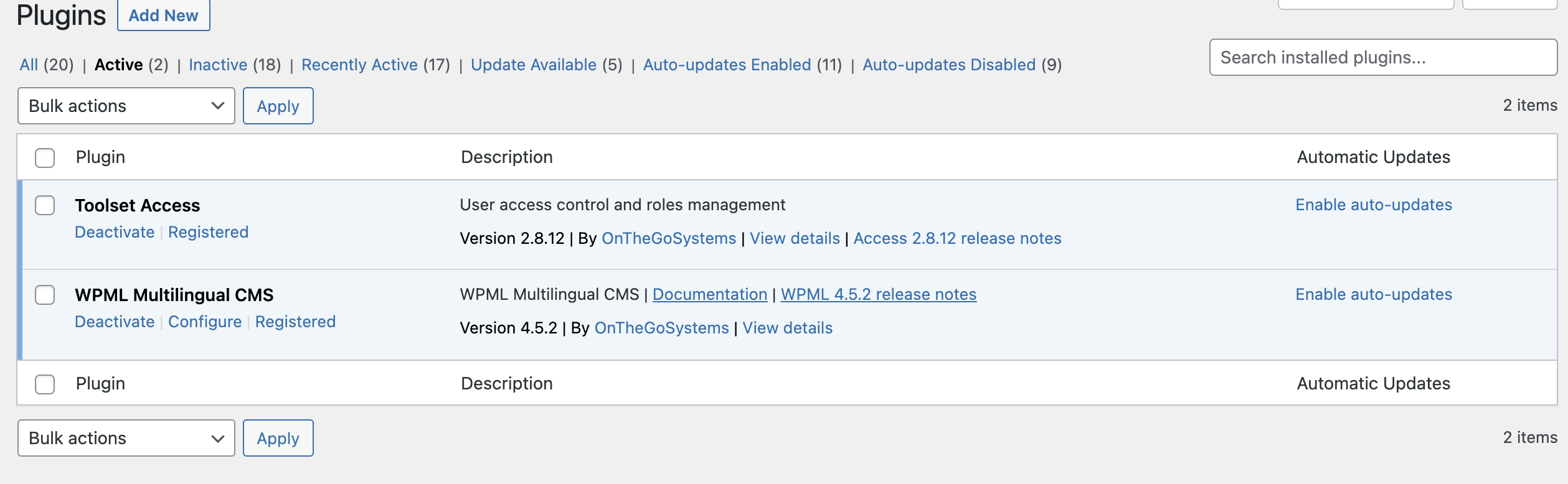 I just checked by creating a test with with WPML and only Toolset Access plugin is active. You can login to the test site using the following URL: