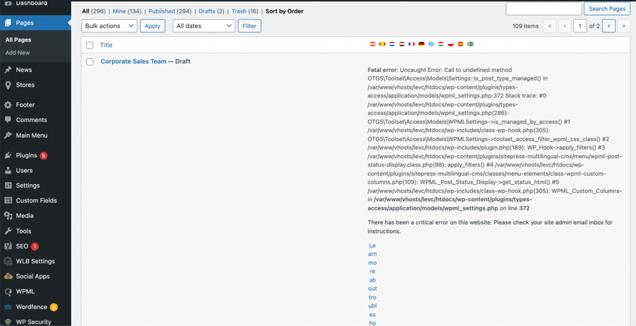 But i have the problem that after the activation of the plugin i get the critical error as you can see in the screen shot. And i only can se the first page in the page menu. I also tried to deinstall all other plugin in use and to switch to the standard Twenty Twenty One theme to exclude the error on an other plugin or in my theme. But the error still remains. So that i guess that it can only be a problem between the wpml and the toolset plugin.