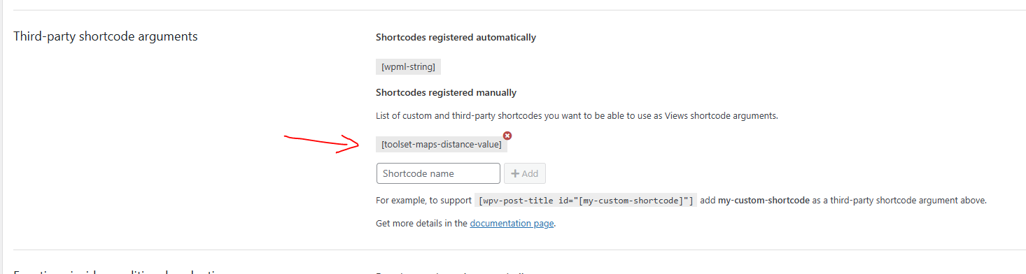 Finally please register toolset-maps-distance-value in WP Admin → Toolset → Settings → Front-end Content → Third-party shortcode arguments.