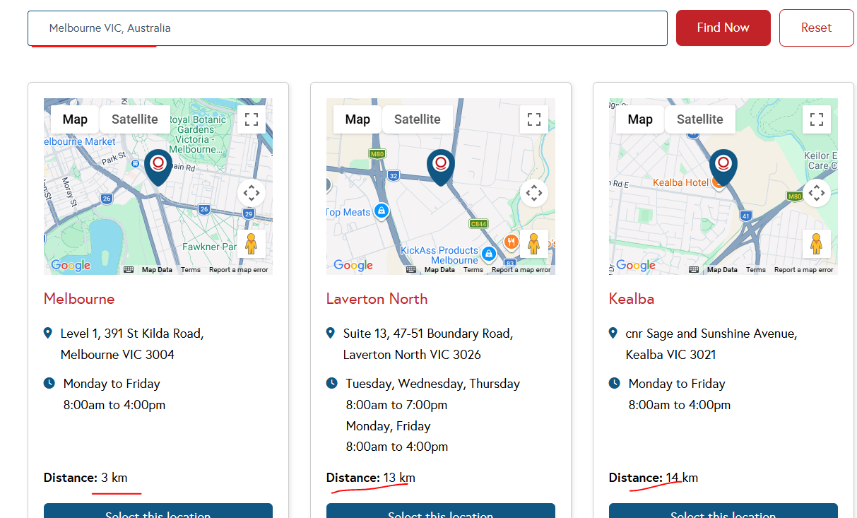I tried to search "Melbourne VIC, Australia" and the distance showing up.