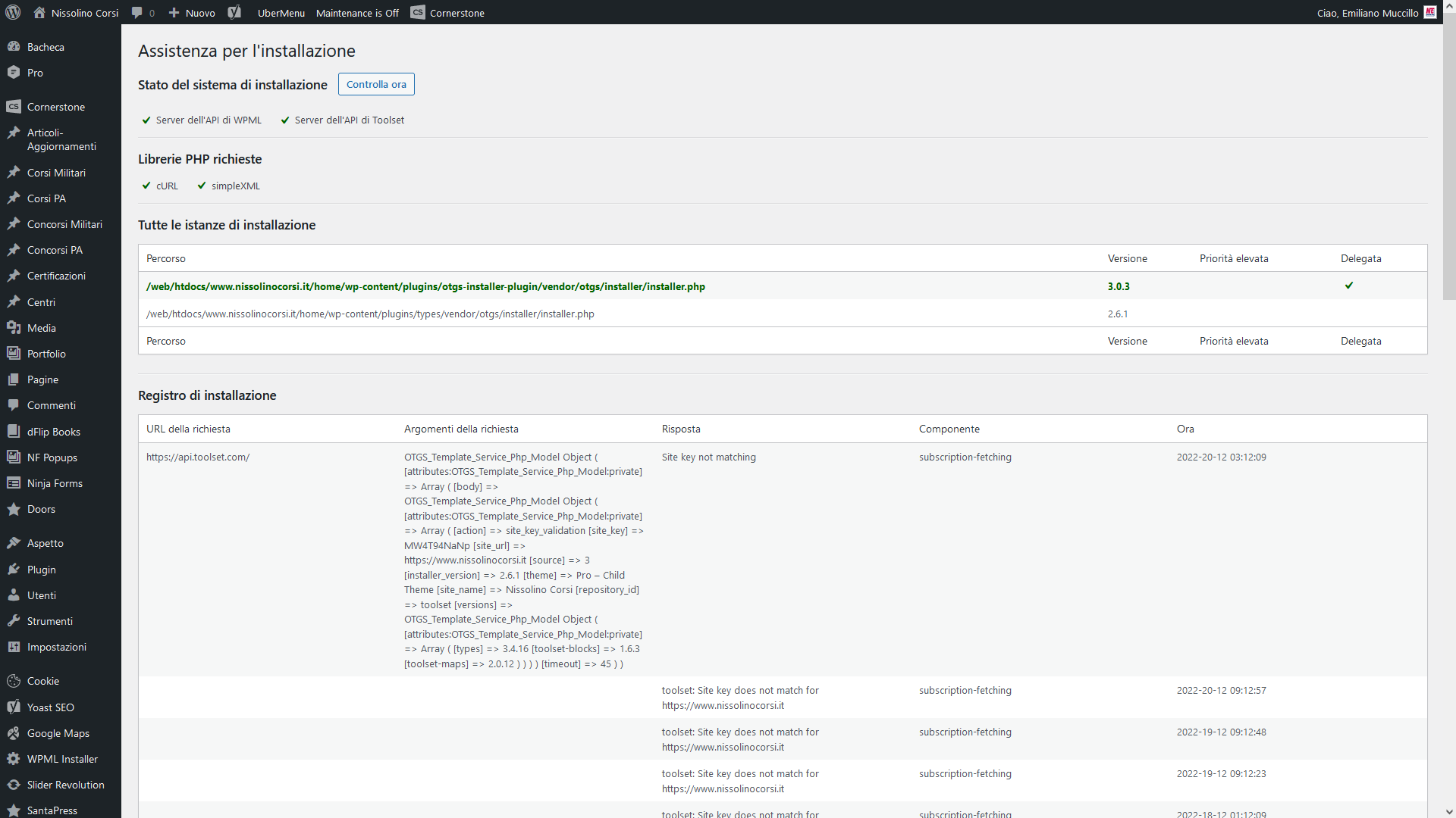 I tryed to create a new site key and tryed to register Toolset with newly generated site key, but the message has not disappeared. I am attaching an image detailing the issue.