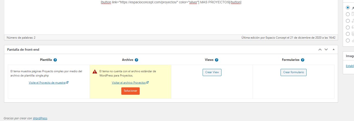 And one more thing, there is a warning in the backend that says that there is not file in the theme for post and projects (and there is an option to create it with toolset type). Could this be the problem / solution?