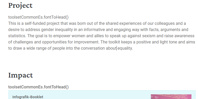 I recently installed and activated WP Rocket so I assume this causes the issue. But even after turning off JavaScript delayed execution and/or creating exceptions for Toolset, "toolsetCommonEs.fontToHead()" remains visible in the frontend. I tryed clearing caches.