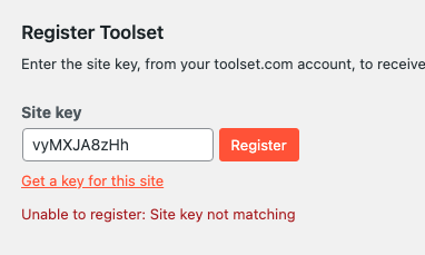 Then, click on the link "Get a key for this site" that shows with the screenshot you shared, that will allow you to create a new site key for your current site and try to copy/paste that newly generated site key.