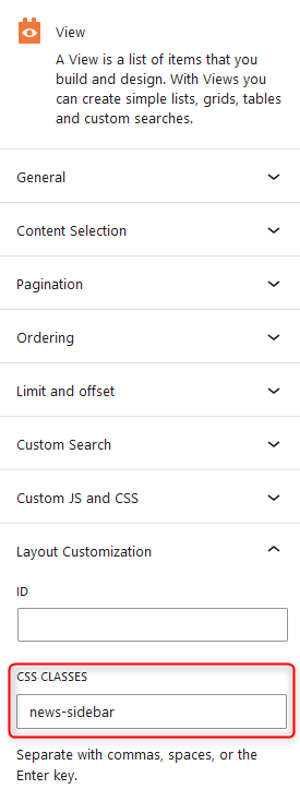 I am trying to add custom css classes at theme block editor > View block > Layout Customization section > "CSS CLASSES" field.
