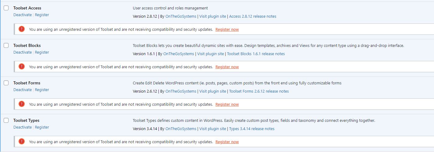 Home › Toolset Professional Support › [Resolved] WordPRess Dashboard error message after installation of Toolset Plugins