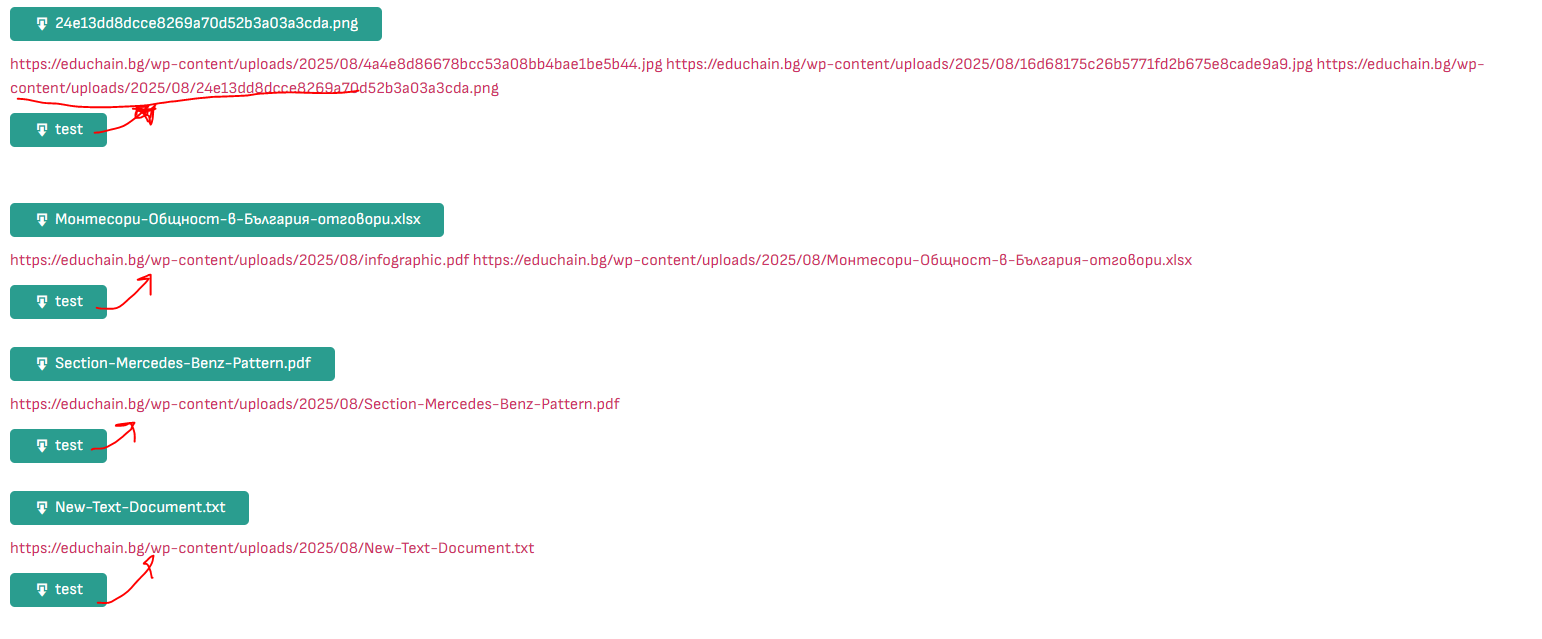 The file selection button selects multiple files trough the manager, but the view shows only 1 button with dynamic file url name, although all files have been uploaded.